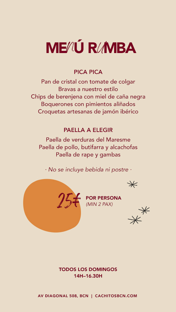 Los presentes Términos y Condiciones regulan la compra y disfrute de la experiencia gastronómica y musical “La Rumba de Cachitos”, que se celebra todos los domingos en Cachitos.